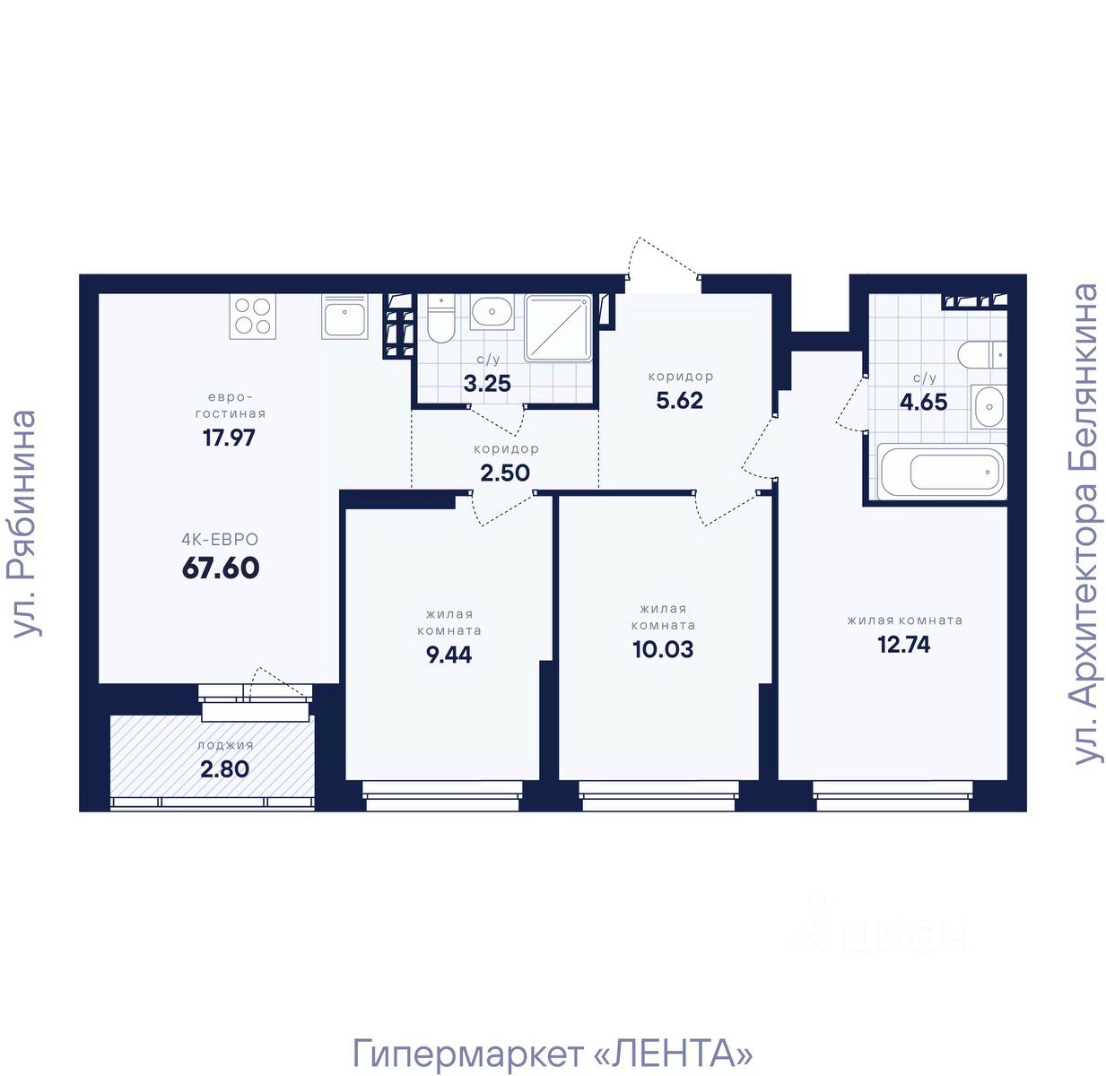Общая площадь67,6 м2