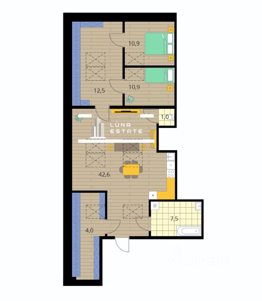 2) Ваша резиденция как семейное достояние. КВАРТИРА общей площадью 90 м2 в значительной мере имеет свободную планировку, предоставляя широкое пространство для фантазии В наличии 2 санузла, гардеробная, место под установку дровяного камина (дымоход установлен)!