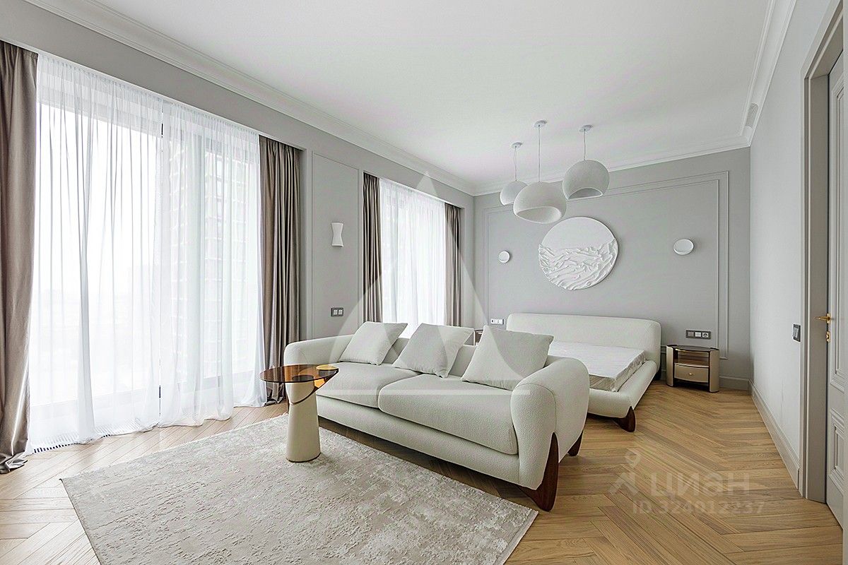 Элегантная 5-комнатная квартира площадью 159 кв.м. в жк Prime Park. Дизайнерская отделка в светлых тонах создает атмосферу современного комфорта. Панорамные окна наполняют пространство светом и открывают приятные виды на Москва Сити, Ходынский бульвар, тц Авиапарк. Каждая деталь продумана для создания гармонии и уюта, а также для максимального удобства. Планировка: угловая кухня-гостиная-столовая, мастер-спальня с гардеробной и ванной комнатами, спальня с гардеробной и ванной комнатой, две спальни, ванная комната, гостевой с/у, постирочная. В квартире предусмотрено множество встроенных шкафов и систем хранения.