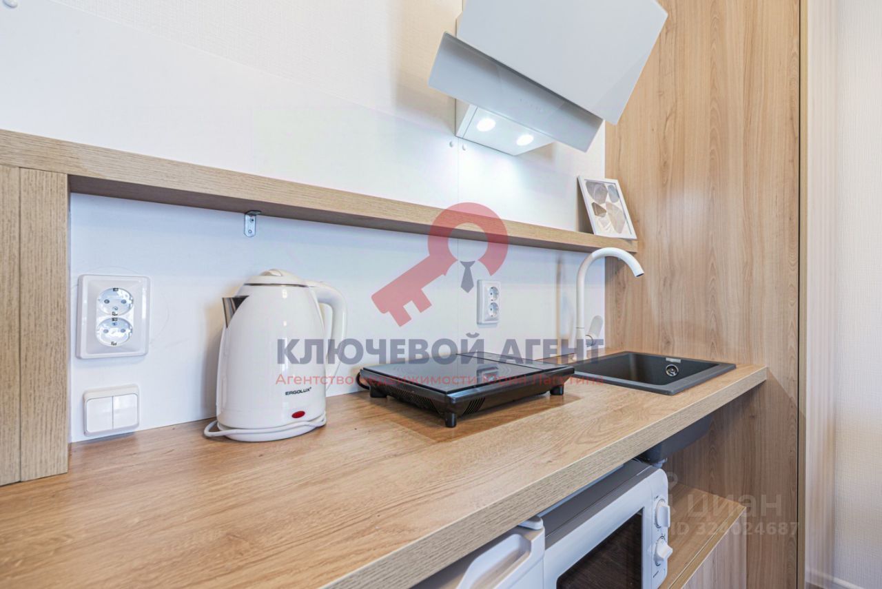Полностью укомплектована мебелью и техникой: * Кухонный гарнитур с арочной поверхностью * Стиральная машина * Микроволновая печь * Диван двуспальный (раскладывается) * Вместительный шкаф