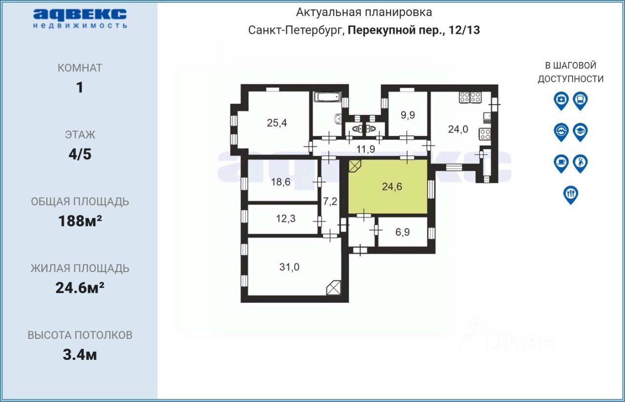 Отличная комната в малонаселённой квартире. В шаговой доступности две станции метро - Площадь Восстания и Площадь Александра Невского. Комната правильной формы, очень светлая, с большим окном и видом в просторный двор, вход с улицы, есть лифт. Комнату можно переделать в студию и у вас будет отдельная квартира в центре города. Также можно купить соседнюю комнату 6,9 метров. Ещё много плюсов, звоните всё расскажу.