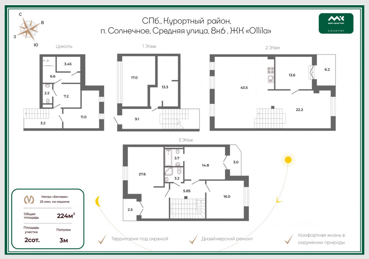 Итог для премиального покупателя Это не просто таунхаус — это стиль жизни: Природа Финского залива и благоустроенные пляжи рядом. Прямой доступ к Санкт-Петербургу по железной дороге. Удобная транспортная логистика через ЗСД и основные шоссе. Элитный, закрытый, приятный кластер средового комфорта. Самое выгодное ценовое позиционирование среди предложений в радиусе 5 км.