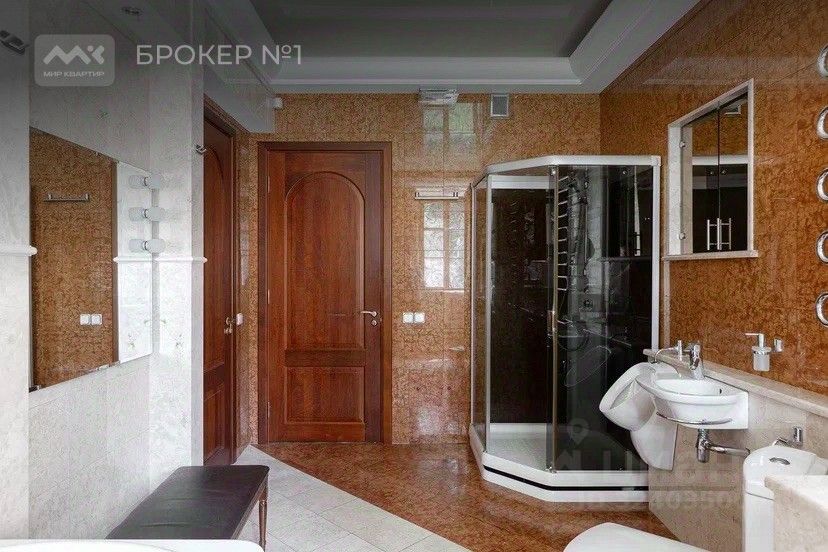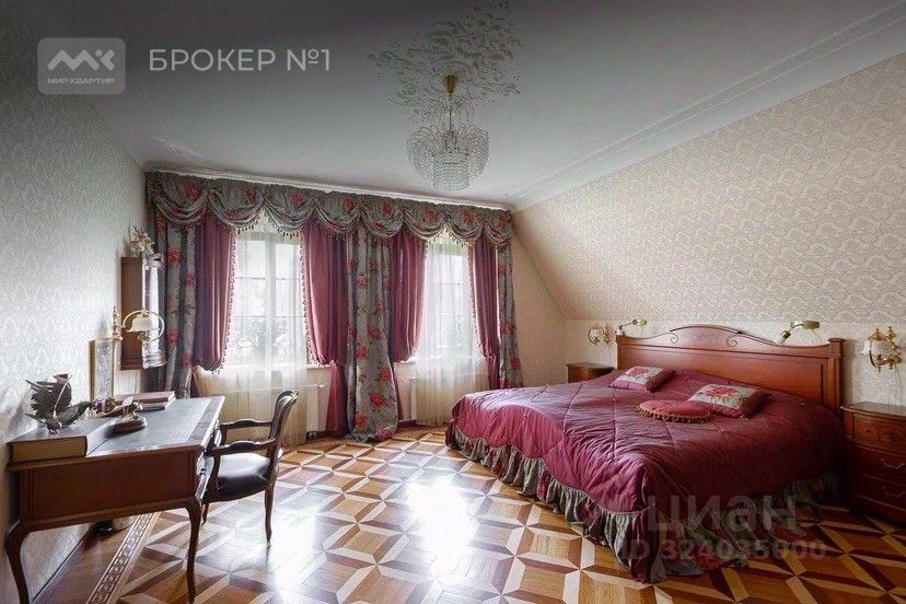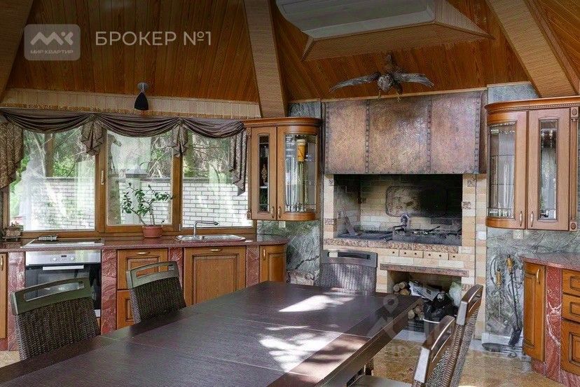 Предлагается к продаже загородная резиденция, расположенная на земельном участке ИЖС площадью 36 соток с ландшафтным дизайном и собственным прудом. Здесь расположены 2 дома, построенные из кирпича. В основном доме площадью 347,8 кв.м находятся 2 открытые террасы на 1 этаже, гостиная с камином(47.6 кв.м), кухня-столовая (36.8 кв.м), просторная спальня (25,6 кв.м) с зимним садом и ванной комнатой (13.8 кв.м), гардеробная.Высота потолков 3.17. Отдельное помещение на межэтажном уровне оборудовано встроенной холодильной камерой. На 2 этаже располагается комната отдыха (35.2 кв.м) с камином и зимним садом, кабинет-спальня (25,7 кв.м), детская комната (18,4 кв.м) и спальня (17,3 кв.м) с балконом, ванная комната с душевой и большая гардеробная(14.1 кв.м). На 3, мансардном этаже: 2 гостевые спальни (24 и 14 кв.м.), санузел и гардеробная.