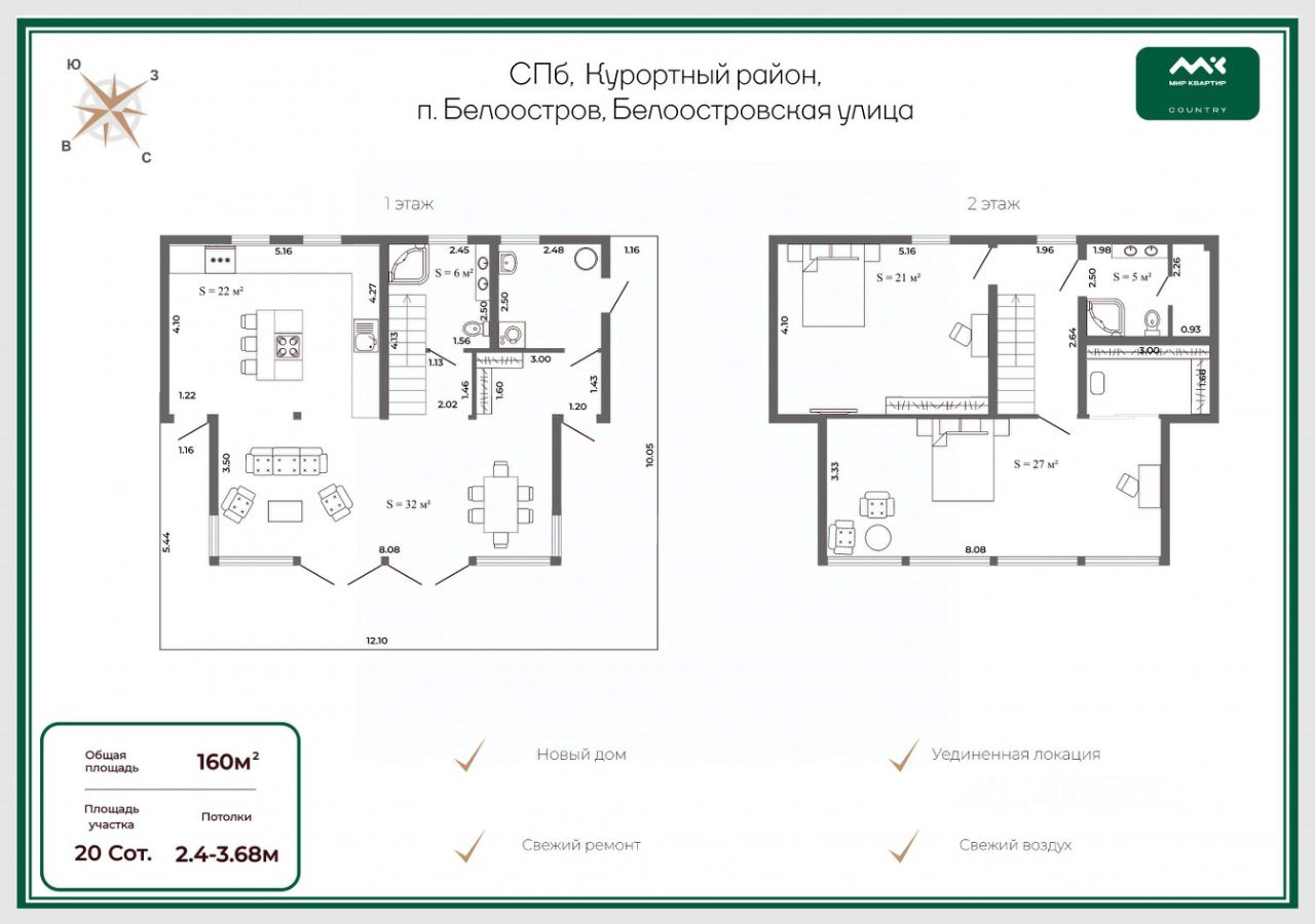 Участок находится в живописном месте, вдали от городской суеты, в посёлке Белоостров. В шаговой доступности большое количество магазинов, от ''Магнита'' до небольших павильонов, есть и пекарня и ''Озон''.