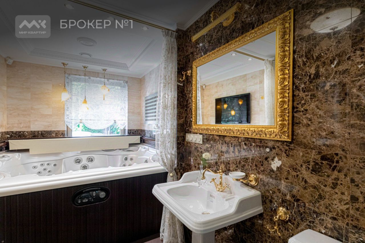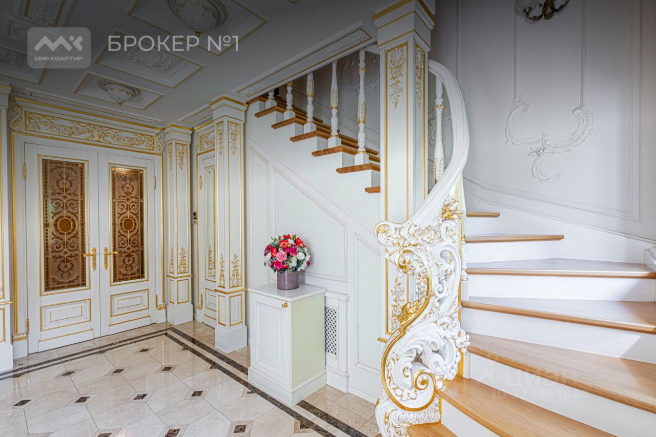Внутреннее убранство хозяйской части дома выполнено в царском стиле руками мастеров- реставраторов Эрмитажа: мрамор, лепнина и натуральная позолота! Двери выполнены по индивидуальному заказу. Витражи ручной работы изготовлены мастерской дизайна И. Васильевой.