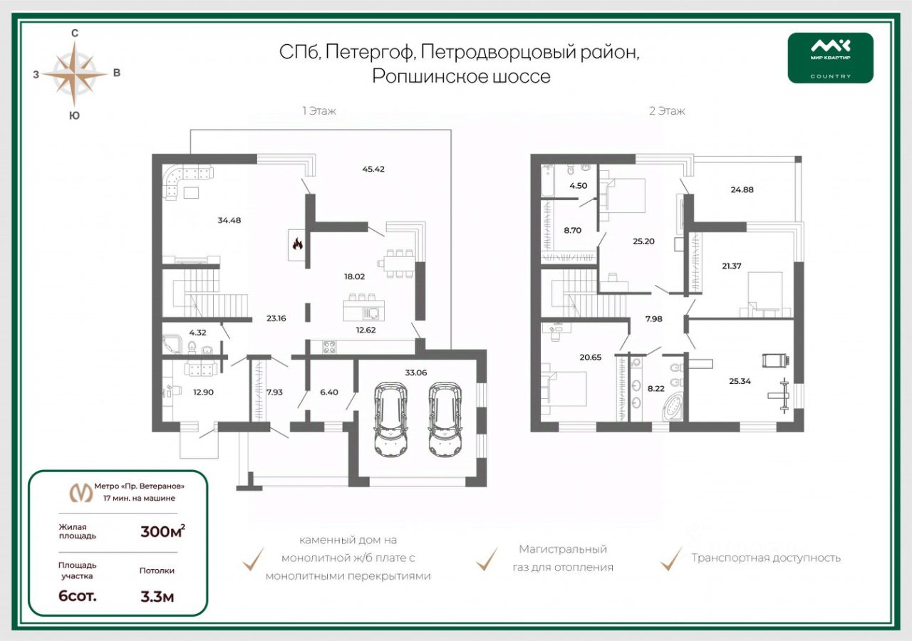 Арт. 111670261 Современный особняк в ''Петергофских дачах'' — 300 м² элегантной архитектуры В закрытом клубном поселке, всего в 15 минутах от КАД и в пяти минутах от Финского залива, предлагается новый кирпичный дом 2025 года постройки. Простор — 300 м², участок — 17 соток, идеальные пропорции для комфортной загородной жизни. Детали, говорящие о статусе: — Монолитная плита, двойной кирпич с утеплением, фасад из клинкерного кирпича и термопланкена. — Панорамные портальные окна ALUTECH, кровля Braas. — Газовое отопление, внутрипольные конвекторы, теплые полы, центральные коммуникации. — Гараж на 2 авто, терраса 75 м² из термососны. Внутри —продуманная планировка, шесть жилых комнат, санузлы на каждом уровне, Wi-Fi, все готов для воплощения в жизнь вашего авторского дизайна. Локация, которой трудно найти равных: Рядом — дворцово-парковые ансамбли Петергофа, Александрийский парк, Нижний парк, исторические фонтаны и прогулочные аллеи, гольф клуб, куда вас отвезут на индивидуальном кей-каре. Для ценителей — тишина, безопасность, премиальная инфраструктура поселка и близость к морскому бризу. Возможна ипотека.