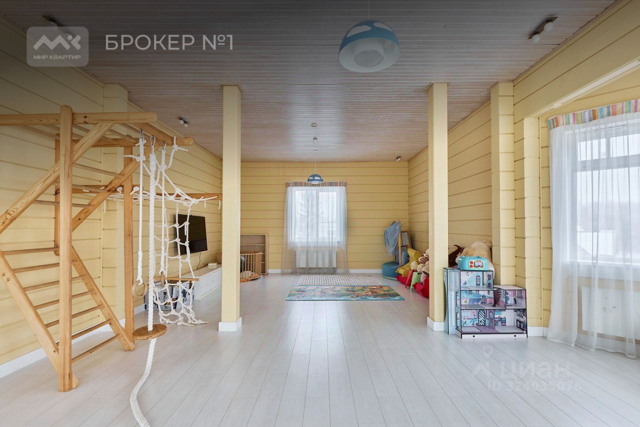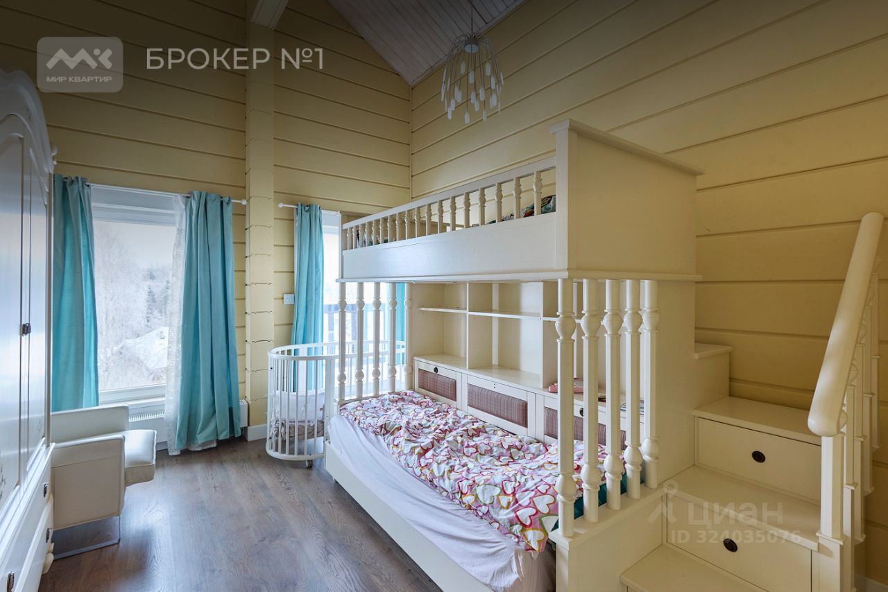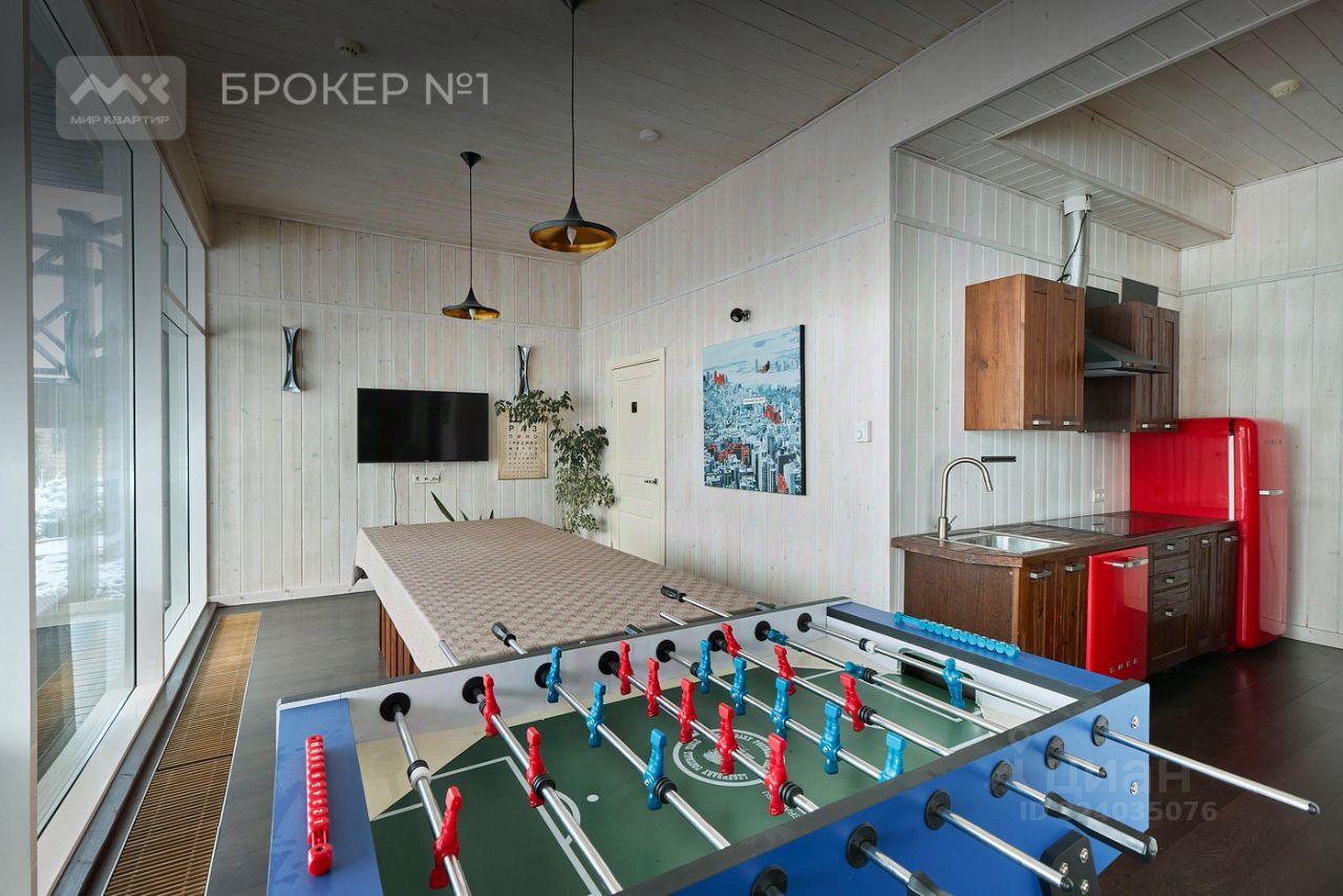 На первом этаже расположен просторное и светлое открытое пространство: кухня-столовая с выходом на террасу, гостиная с панорамным остеклением и вторым светом, а также уютная игровая комната. Второй этаж включает в себя мастер-спальню с собственной ванной комнатой и выходом на террасу, три детские комнаты и две гостевые спальни. Все комнаты обставлены с учетом последних трендов в дизайне и оснащены высококачественной мебелью и техникой. В цоколе дома — идеальное место для отдыха и релаксации: лаунж-зона с выходом в бассейн, кухня-бар, сауна с панорамным остеклением и купелью. Здесь также находятся две гостевые комнаты и удобные места для хранения вещей.
