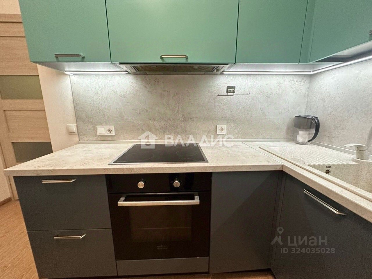 Квартира расположена на первом этаже 12-этажного кирпично-монолитного дома, построенного в 2020 году. Общая площадь составляет 31,5 кв. м, из которых 15,4 кв. м — жилая площадь, 9,7 кв. м — кухня, В квартире оборудована просторная и эргономичная гардеробная. Высота потолков — 2,75 м, что создаёт ощущение простора и свободы.