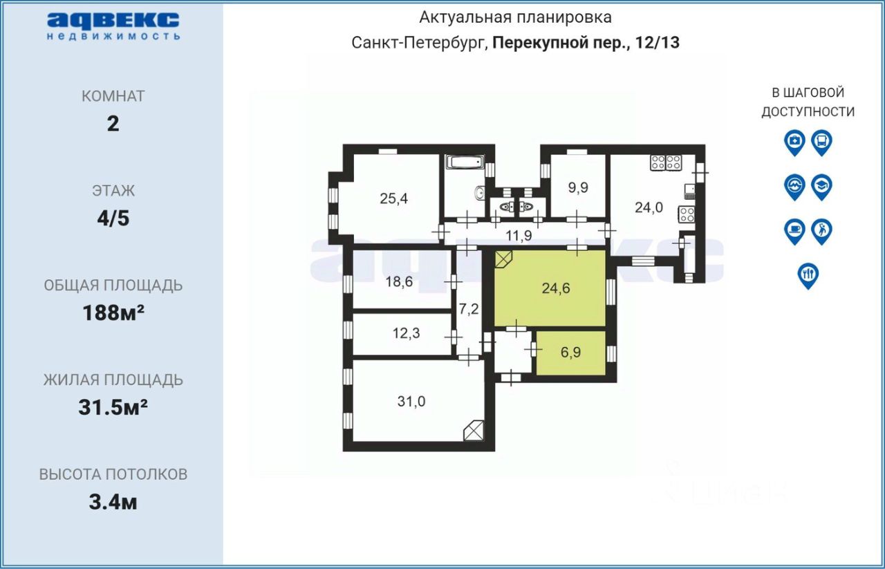 Две изолированные комнаты (24,6+6,9 метров) в малонаселённой квартире. В шаговой доступности две станции метро - Площадь Восстания и Площадь Александра Невского. Комнаты правильной формы, очень светлые, с большими окнами и видом в просторный двор, вход с улицы, есть лифт. Комнаты можно переделать в студию и у вас будет отдельная квартира в центре города. Во дворе есть закреплённое парковочное место. Ещё много плюсов, звоните всё расскажу.