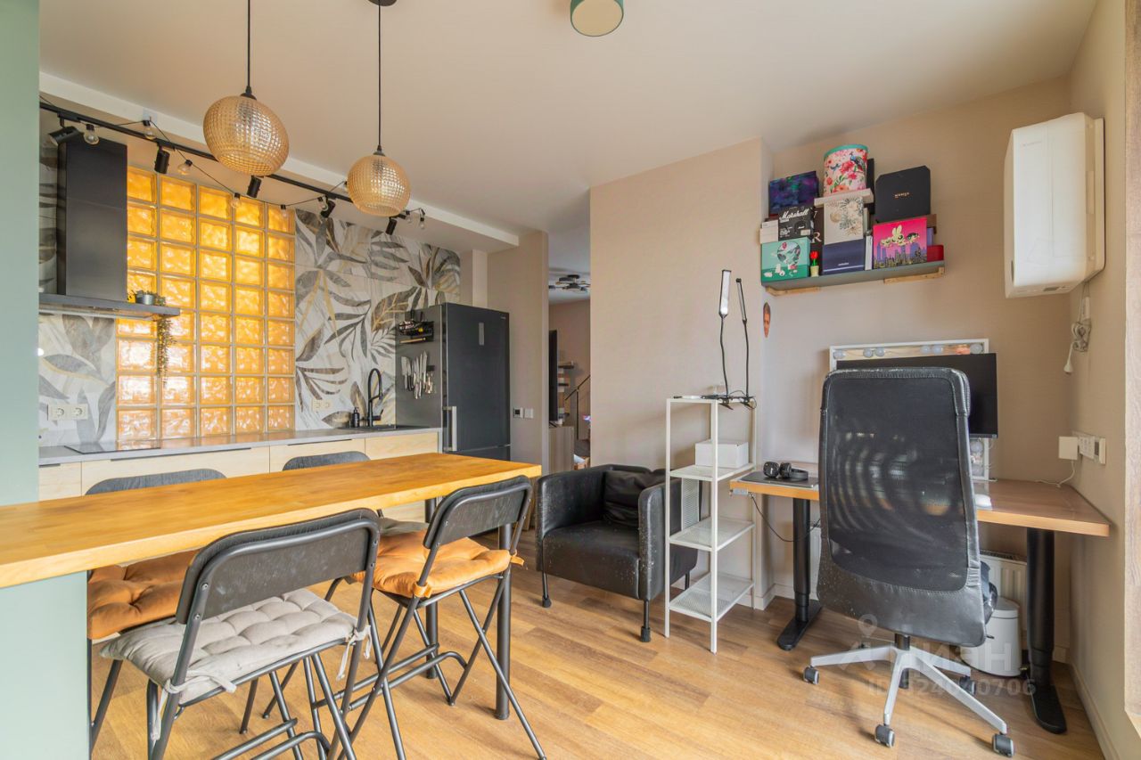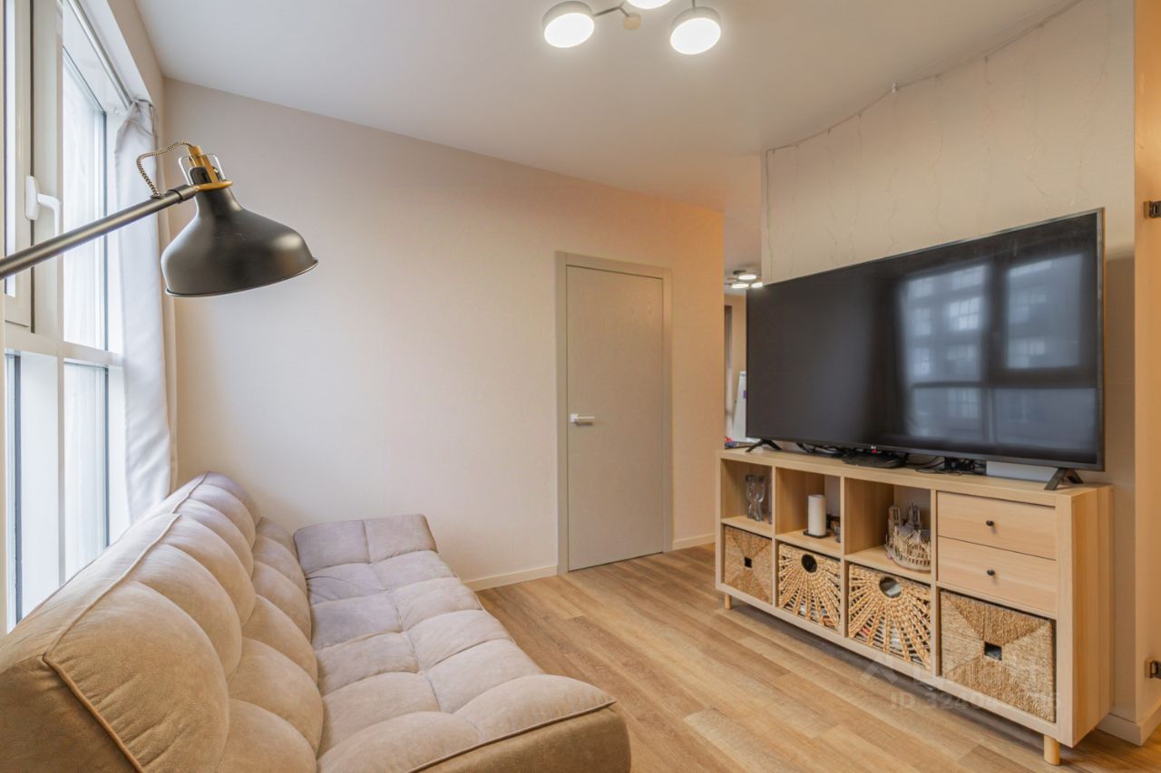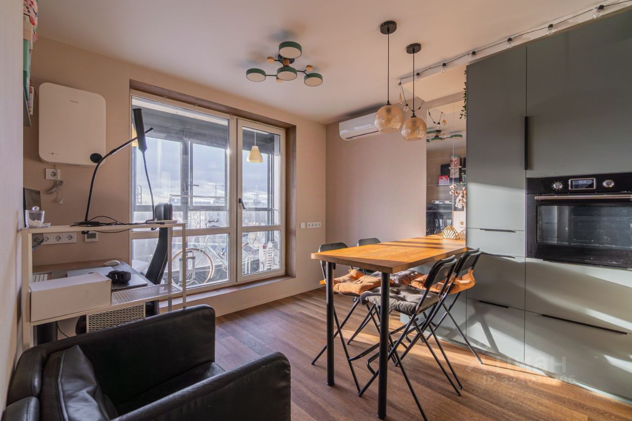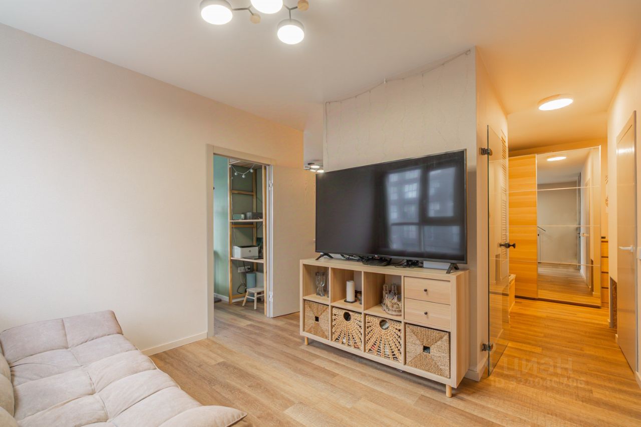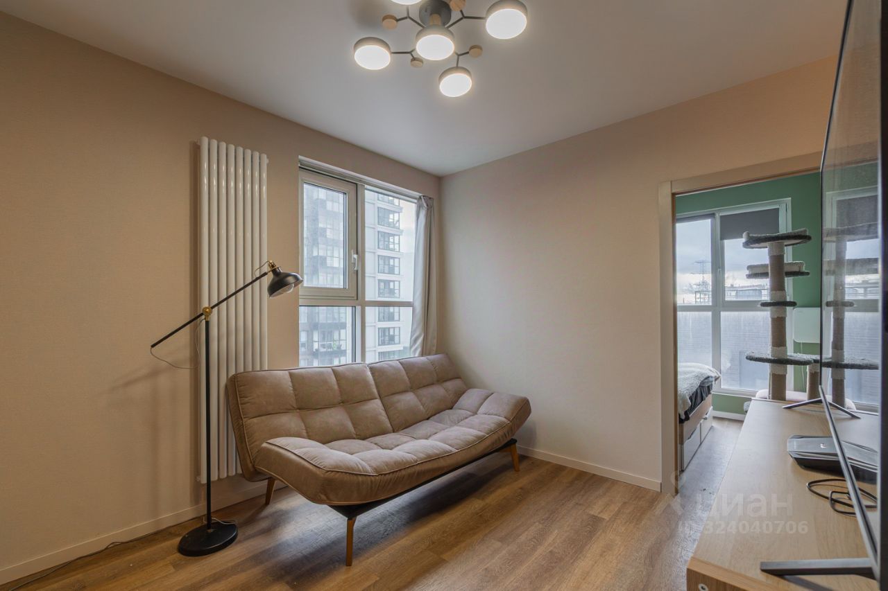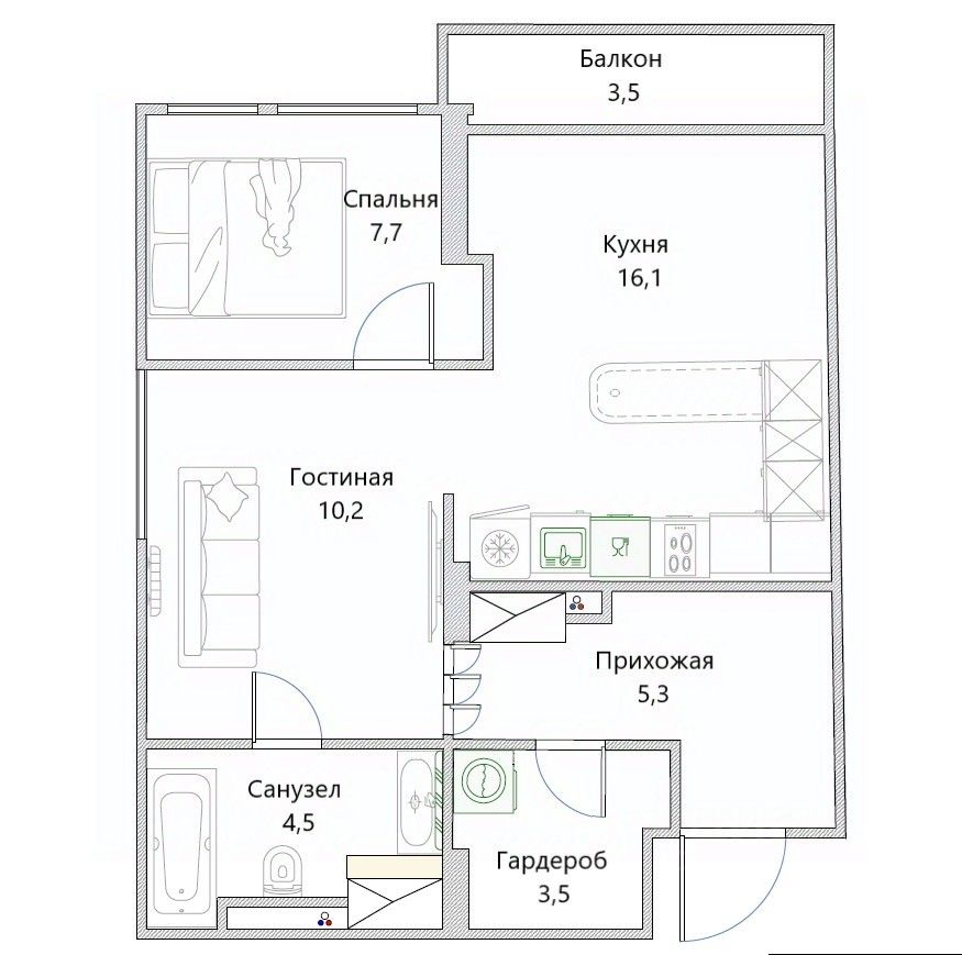 * Характеристики квартиры Общая площадь: 46,5 кв.м. Кухня-гостиная: 16,1 кв.м, комната 10,2 кв.м и спальня 7,7 кв.м. Санузел совмещенный. Дополнительно имеется гардеробная, а современные панорамные окна наполняют пространство светом. Тёплый пол на кухне, в ванной и коридоре. Дизайнерский ремонт выполнен с использованием высококачественных, антивандальных и дорогостоящих материалов. Квартира продаётся со всей мебелью и техникой.