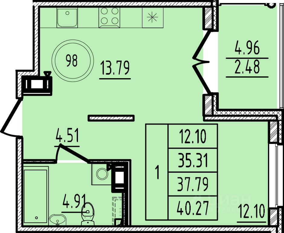 Общая площадь35,31 м2