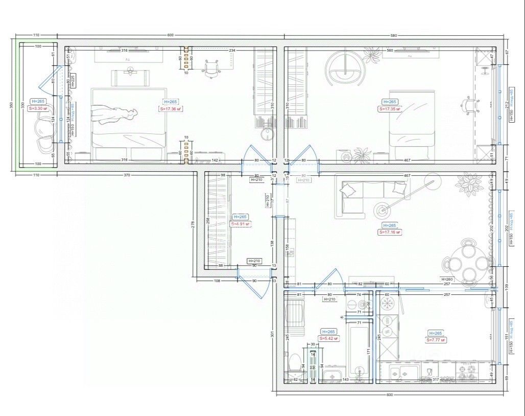 Квартира подготовлена к дальнейшему граммотному и функциональному перепланированнию в 3-евро, площадью 70.8 кв.м, комнаты на две стороны, раздельные (17.6+17.4), кухня-гостиная 25 кв.м, совместный санузел, в прихожей место под просторный встроенный шкаф, балкон.