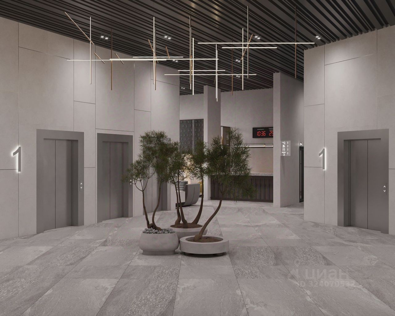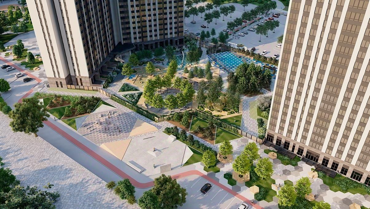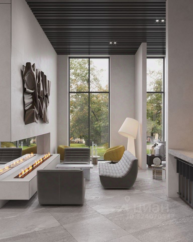 Это первый в Тюмени проект с принципиально новой организацией общественных зон. Три лепестка здания сходятся в большое пространство лифтового холла-вестибюля с зоной рецепции. По желанию жителей, здесь можно организовать консьерж-службу.