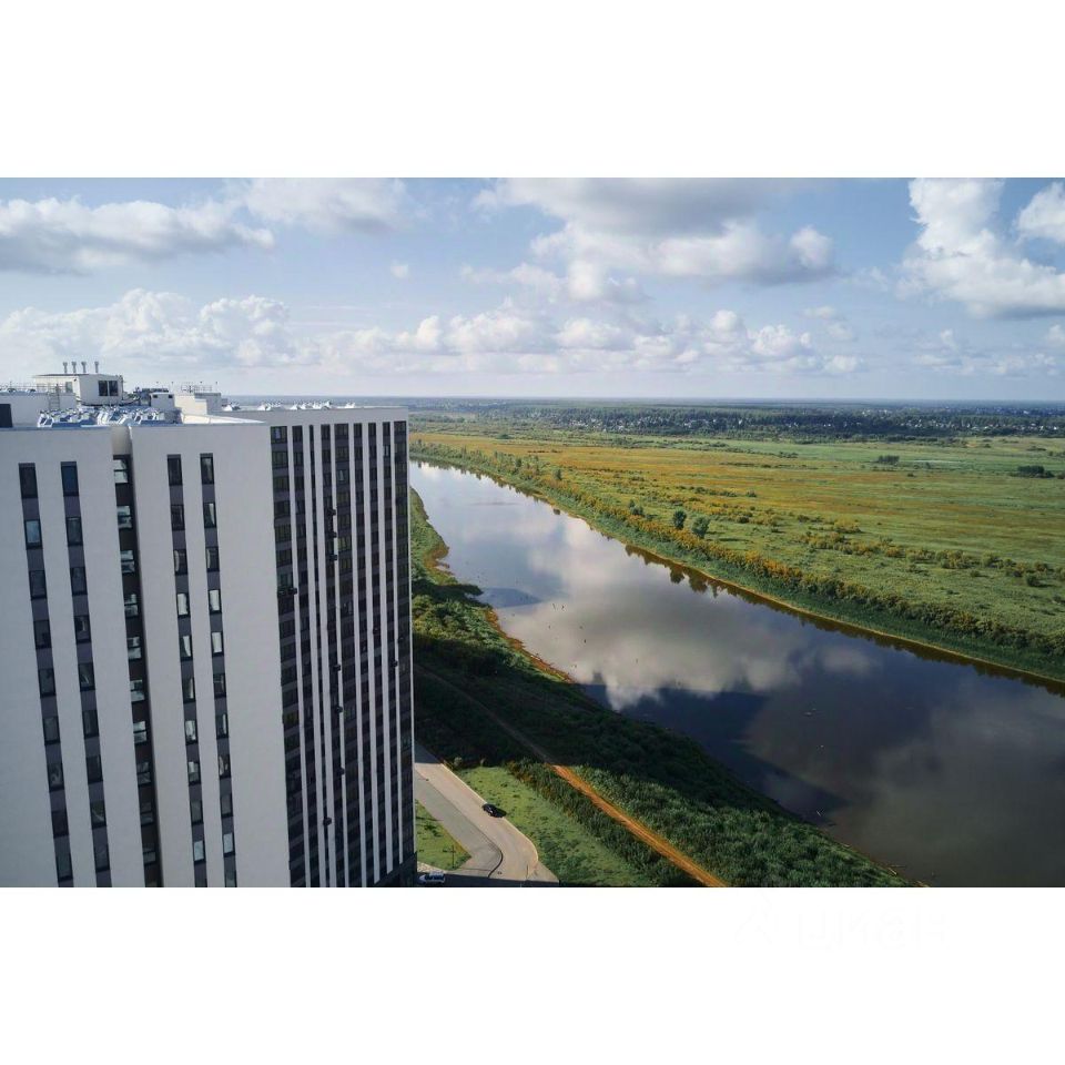 Жилой комплекс на берегу Туры с живописным видом на реку, Мост влюбленных и исторический центр.
