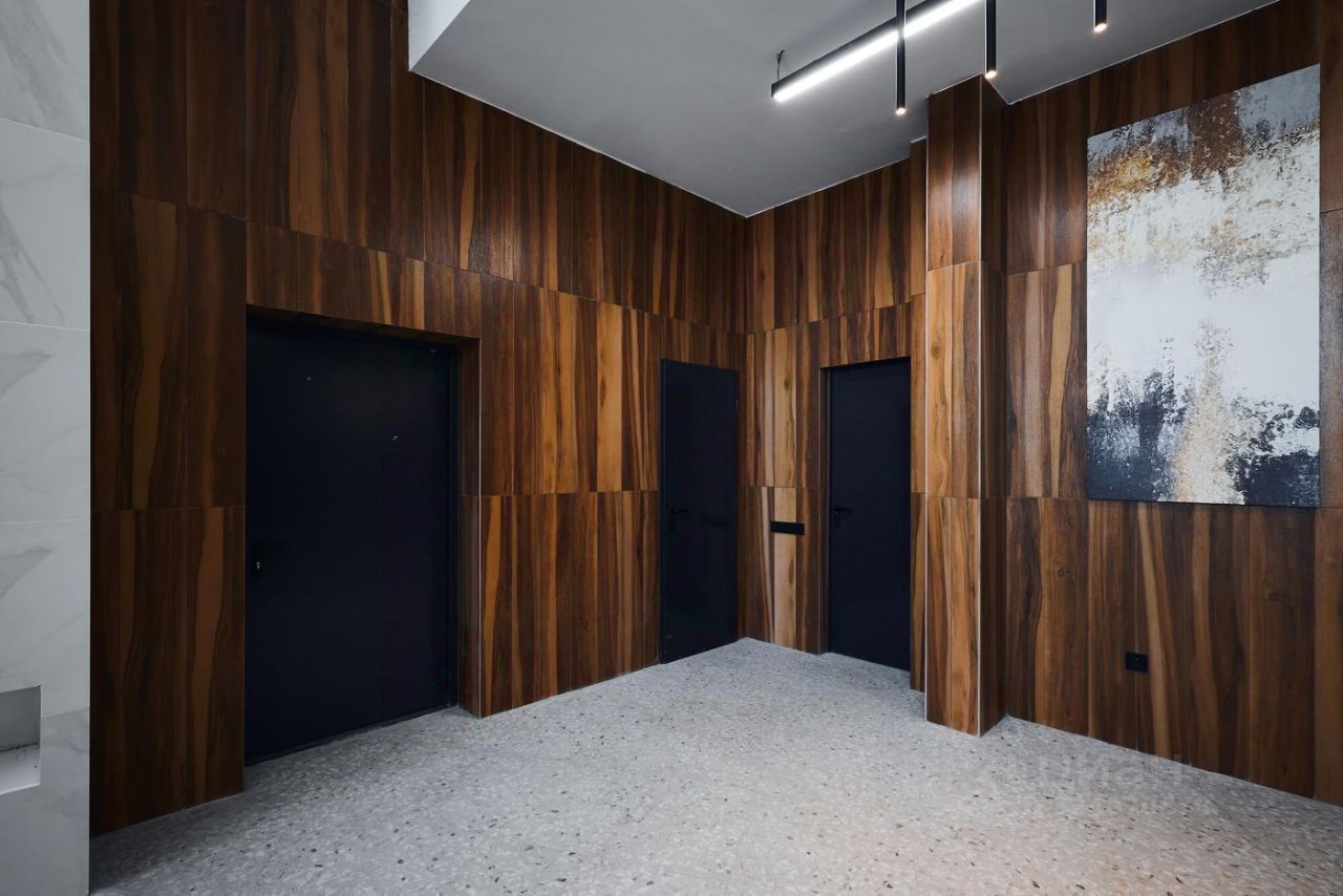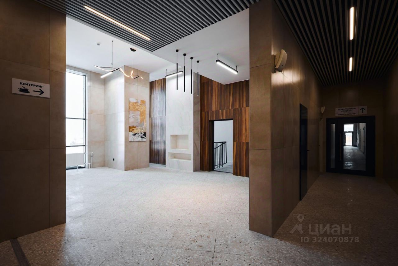 Это первый в Тюмени проект с принципиально новой организацией общественных зон. Три лепестка здания сходятся в большое пространство лифтового холла-вестибюля с зоной рецепции. По желанию жителей, здесь можно организовать консьерж-службу.