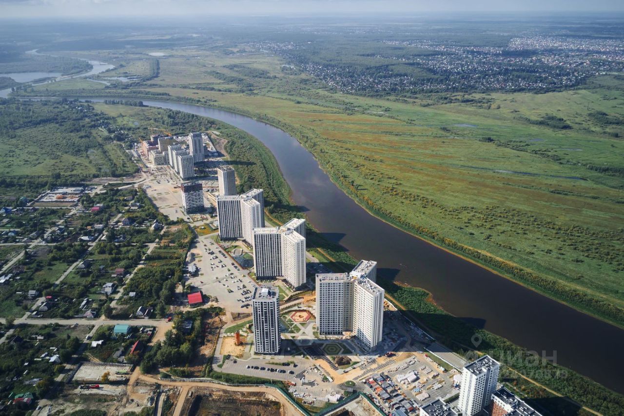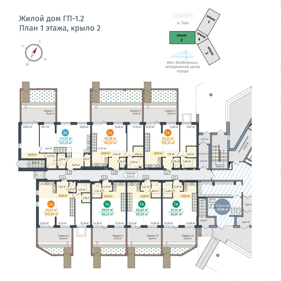 Жилой комплекс на берегу Туры с живописным видом на реку, Мост влюбленных и исторический центр.