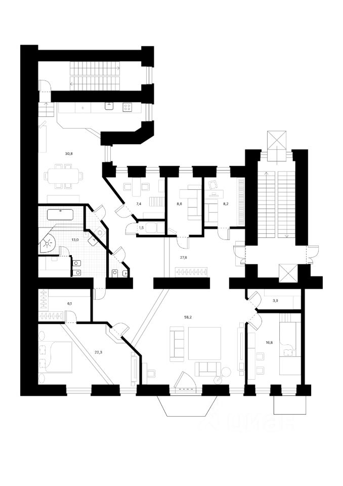 Сдаётся уникальная квартира с дизайнерским ремонтом в стиле модерн площадью 210 м² в самом сердце Санкт-Петербурга. Это пространство, где элегантность сочетается с комфортом, а классический интерьер и итальянская мебель создают атмосферу уюта и достоинства.