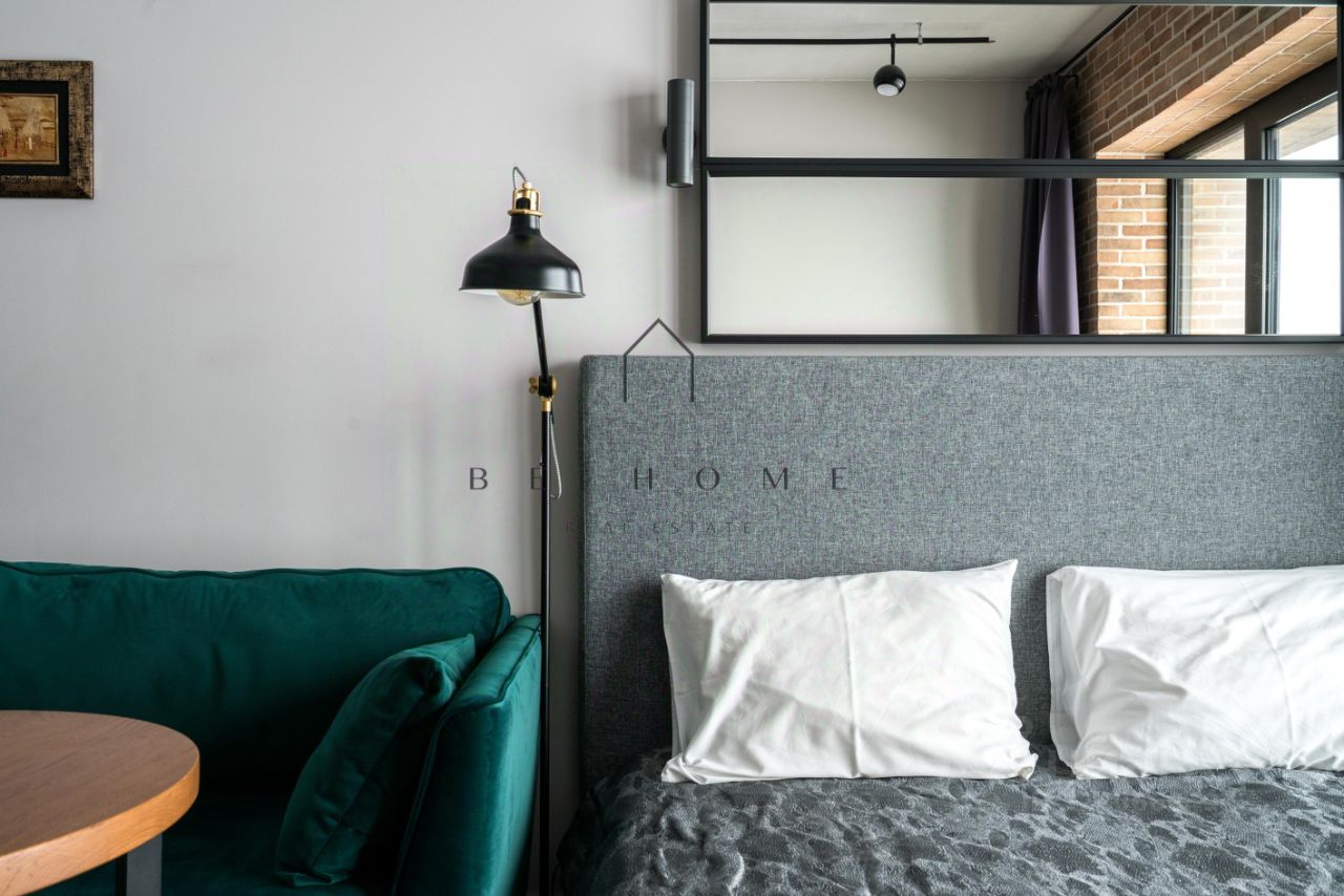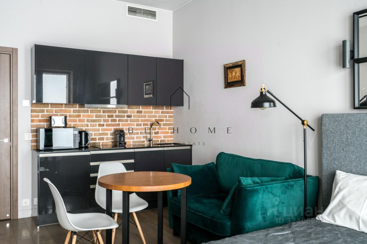 Cветлая студия с панорамными окнами, французским балконом и видом на Финский залив.