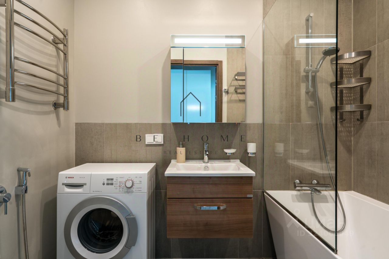 В квартире предусмотрены места для хранения, уютная кухонная зона и просторная ванная комната.