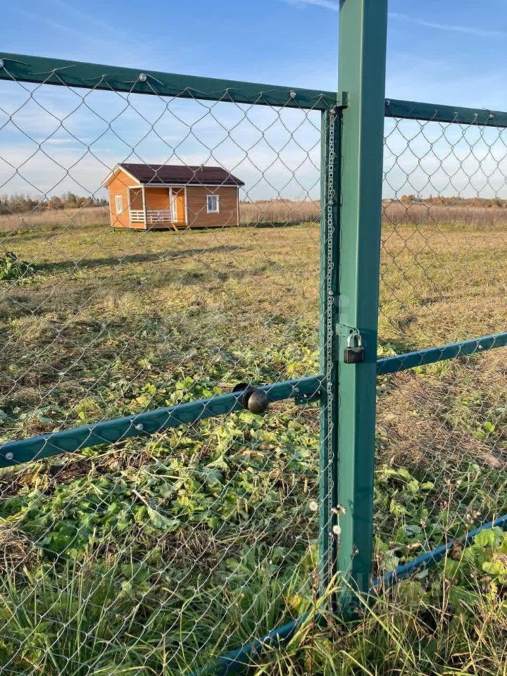 Участок полностью огорожен забором. Есть входные, железные ворота.