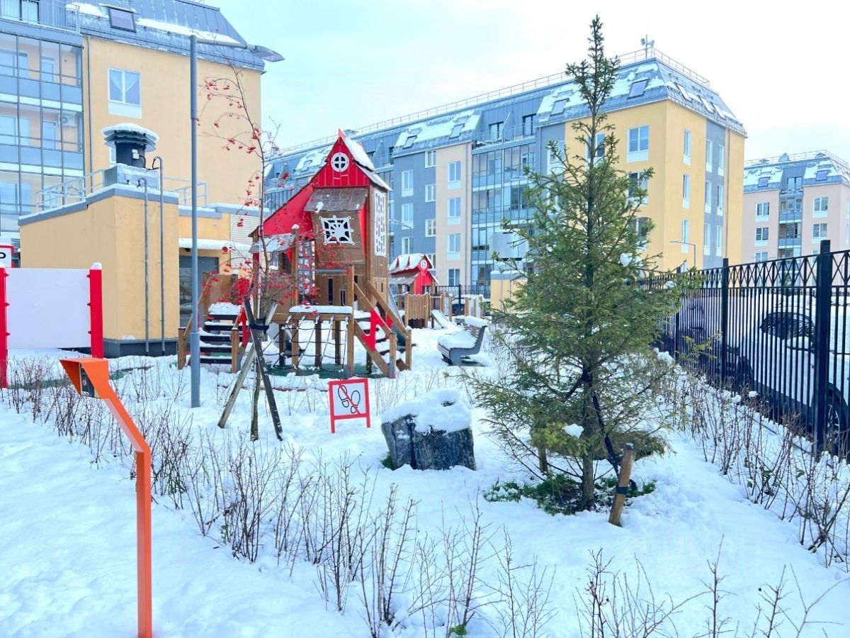 ОБ ИНФРУСТРУКТУРЕ: - Возле дома детский сад 48 и школа 353. - В шаговой доступности есть абсолютно всё для комфортного проживания: магазины Магнит, Дикси и ВкуссВилл, пункты выдачи заказов Wildberries и Озон, кофейни, пекарни, кабинет общей врачебной практики городской поликлиники 21. - В 5 минутах пешей доступности остановка общественного транспорта. - Вокруг комплекса находится лесной массив с велодорожками, освещенными экотропами через весь лесопитомник, в комплексе обилие зеленых зон: яблоневый, вишневый и сиреневый сады, центральная площадь с еловым сквером и оригинальным ландшафтным дизайном.