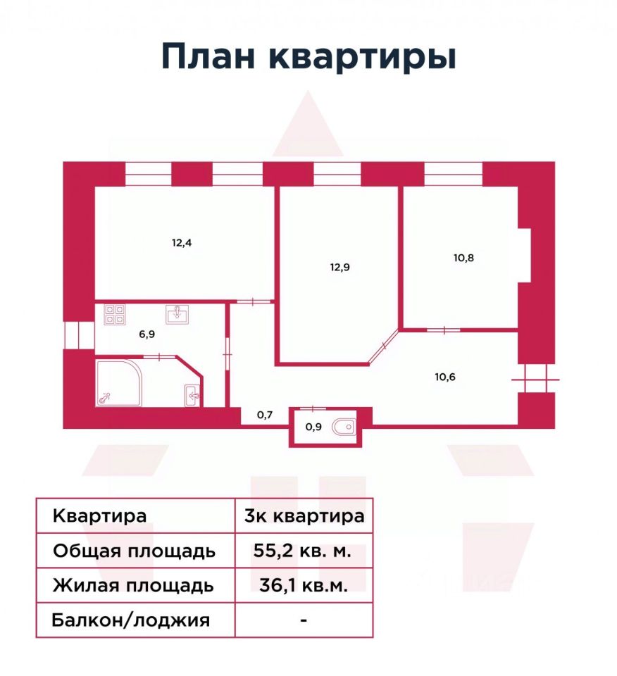 • Общая площадь: 55,2 м² • Жилая площадь: 36,1 м² • Этаж: 5 из 5 • Ванна на кухне: особенность старого фонда • Планировка: с тремя изолированными комнатами • Состояние: требует косметического ремонта • Перекрытия: комбинированные, НЕ ДЕРЕВЯННЫЕ!