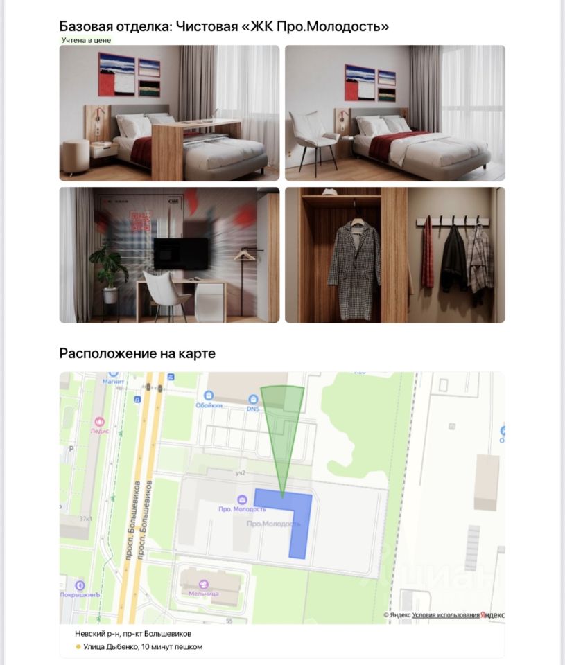 Апартаменты сдаются с полной чистовой отделкой. Комплекс расположен в Невском районе, в пешей доступности от метро Улица Дыбенко. Рядом с апарт-отелем расположены крупные гипермаркеты Окей, Перекрёсток, Максидом и Петрович.