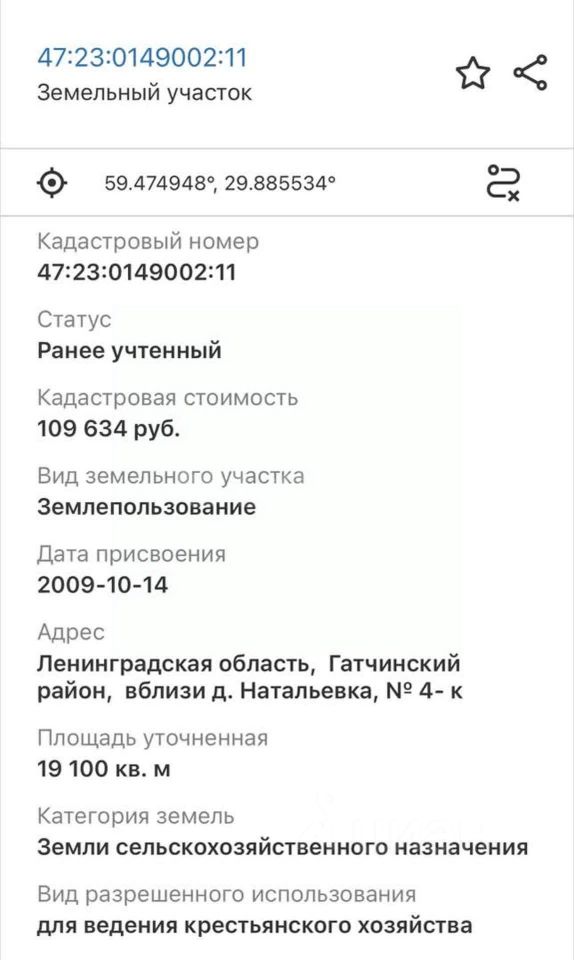 Расположение: Участок находится в живописной местности, всего в нескольких минутах от деревни Натальевка Гатчинского района.