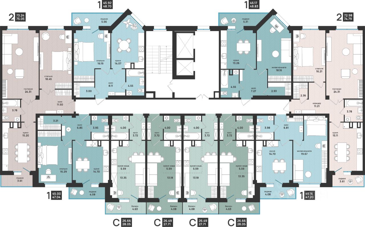 Общая площадь74,79 м2