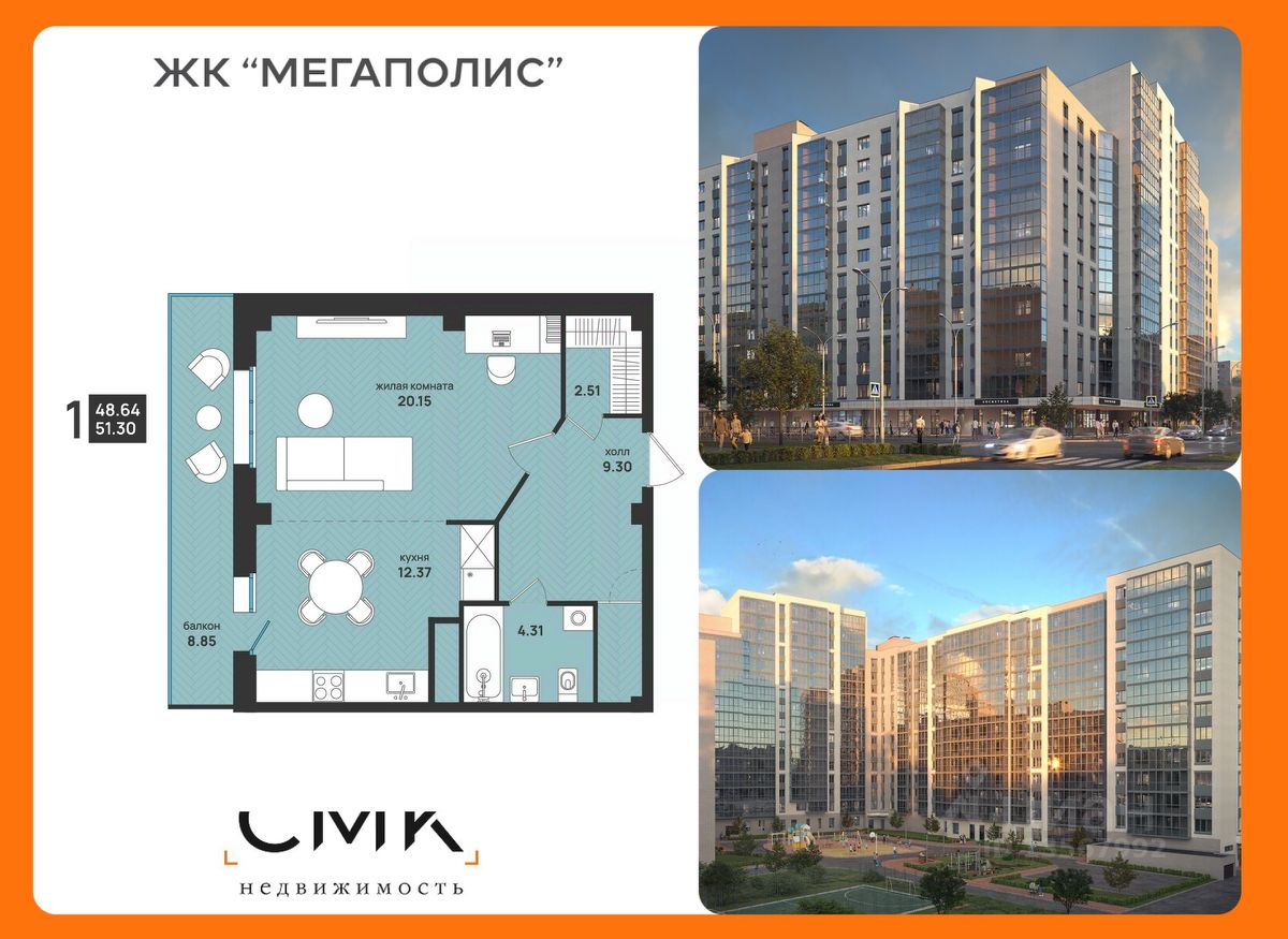 Общая площадь51,3 м2