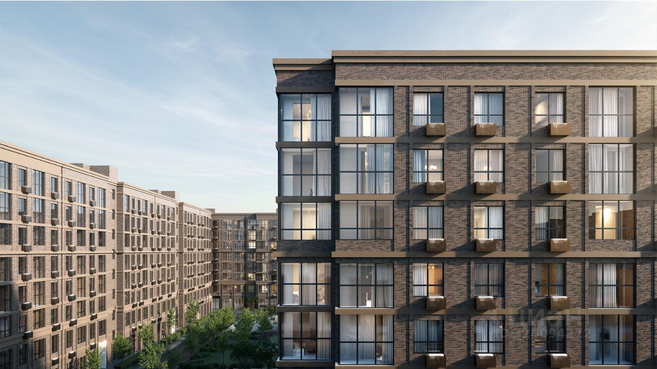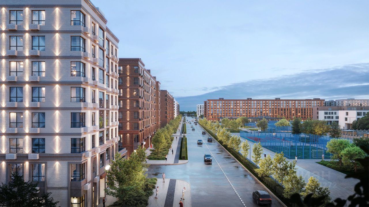 Архитектурные решения дополнены специальным освещением, которое подчеркивает фасады зданий и создает выразительный облик комплекса в вечернее время.