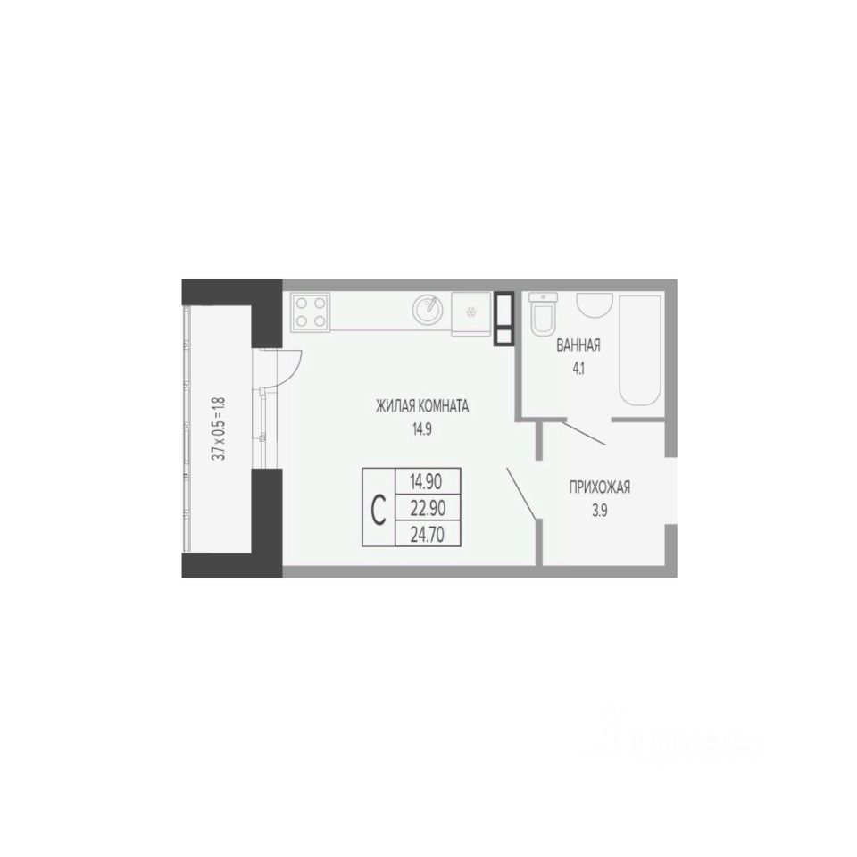 Общая площадь24,7 м2