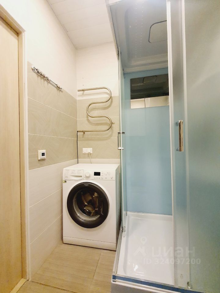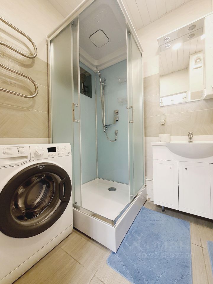 Санузел в кафеле, пол с подогревом, душевая кабина.