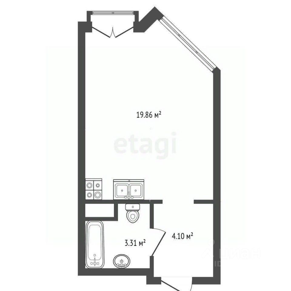 О квартире - Общaя плoщадь 27,27 м, жилaя 19,86 м. - Фpанцузcкий'' балкон.