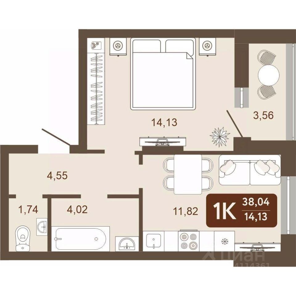 Общая площадь38,04 м2