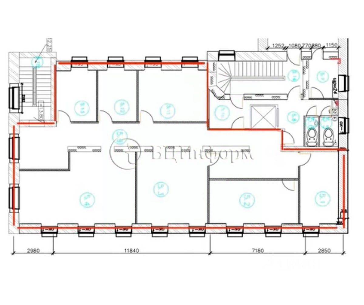 Расположен на 5 этаже бизнес-центра. Кабинетная планировка.