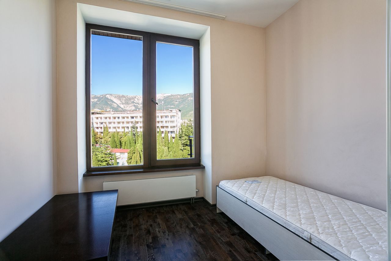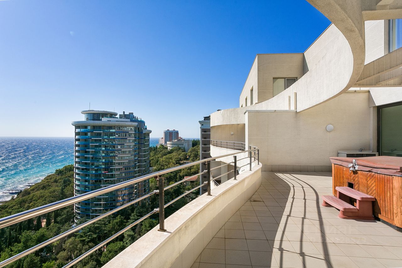 Вашему вниманию предлагается просторная пятикомнатная квартира с террасами и видом на море и горы, расположенная в жилом комплексе Омега, г. Ялта, Приморский парк им. Гагарина.