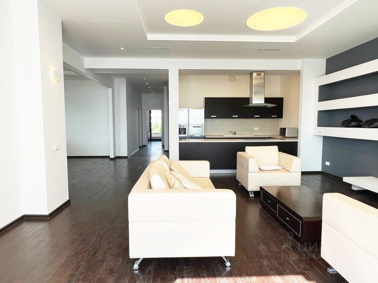 Квартира находится на 14м этаже 14-этажного дома ЖК Омега комплекс престиж-класса с закрытой, охраняемой территории с круглосуточным видеонаблюдением. Квартира общей площадью 237,7 м2 с террасой, внутренняя площадь 175 м2, высота потолков 3 метра. Планировка квартиры включает в себя: коридор-кухню-гостиную 83,8 м2, спальню 18,1 м2, санузел с душевой 4,1 м2, гардеробную 6,4 м2, спальня 11,6 м2, спальня 14,9 м2, детская 8,2 м2, гардеробная 6,4 м2, ванная комната 12,2 м2 В квартире выполнен качественный ремонт, установлена современная техника и мебель. Квартира имеет право прописки.
