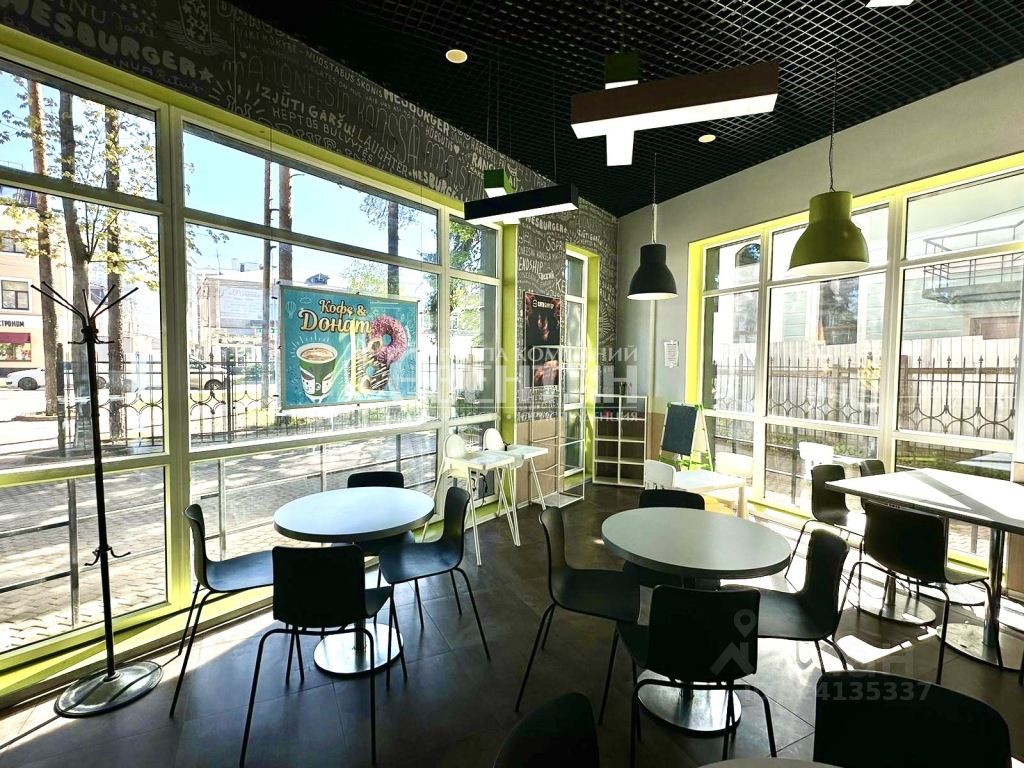 Помещение 180 м2 в аренде. Отдельный вход с улицы. Широкая рекламная вывеска на фасаде. Большой зал с возможностью организации мероприятий, в т.ч. детских. Согласована установка летнего кафе. Выполнен качественный ремонт по дизайн-проекту из финских материалов.