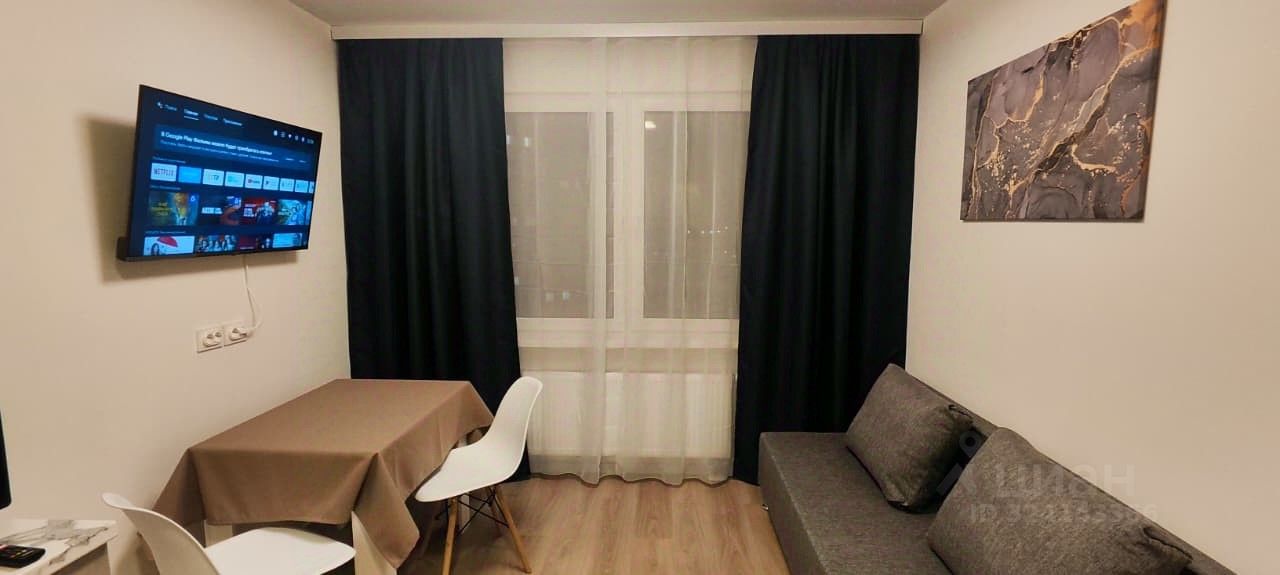 Предлагается в аренду уютная студия с абсолютно новым ремонтом, мебелью, техникой в новом жилом микрорайоне Санкт-Петербурга! Квартира полностью готова к комфортному проживанию: есть необходимая мебель и техника. Сдается в долгосрочную аренду! Без животных!