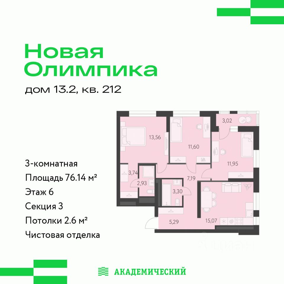 продам 3-к, Академика Парина, 13.212 513 000 ₽