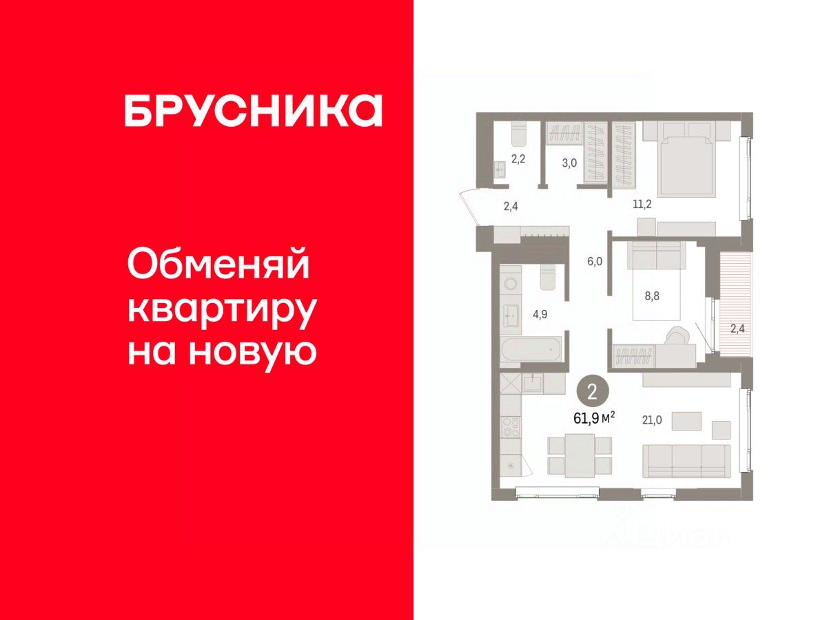 Общая площадь61,9 м2