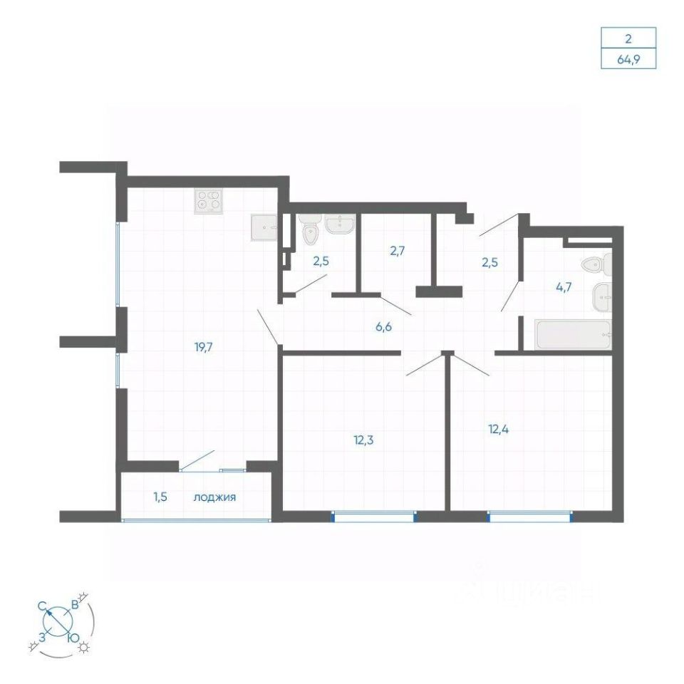 Общая площадь64,9 м2