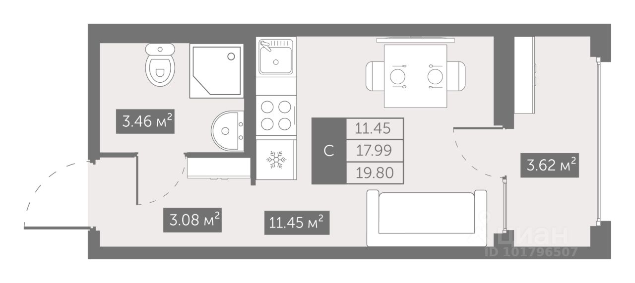 Общая площадь19,8 м2