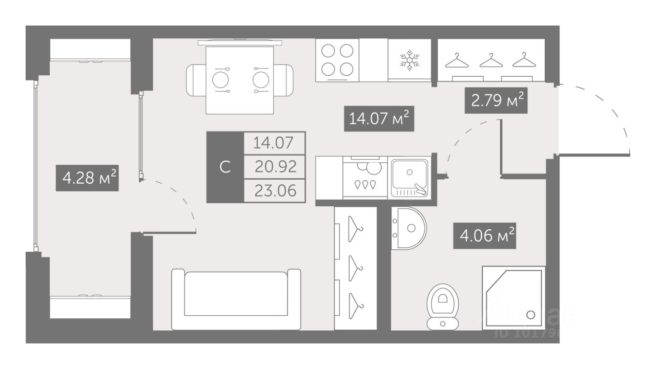 Общая площадь23,06 м2
