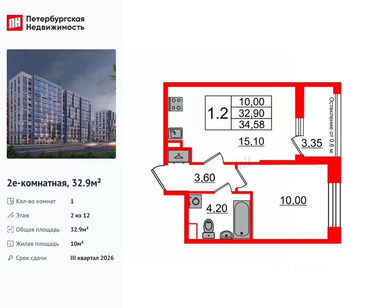 Общая площадь32,9 м2