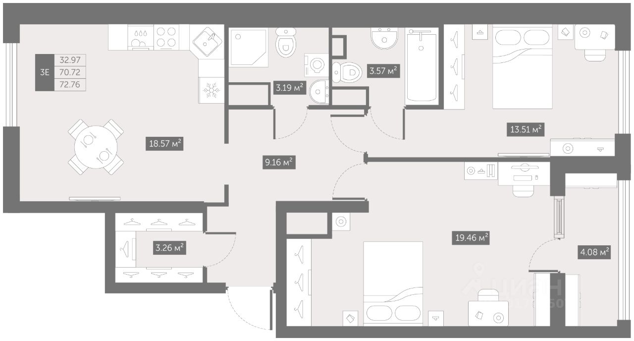 Общая площадь72,76 м2