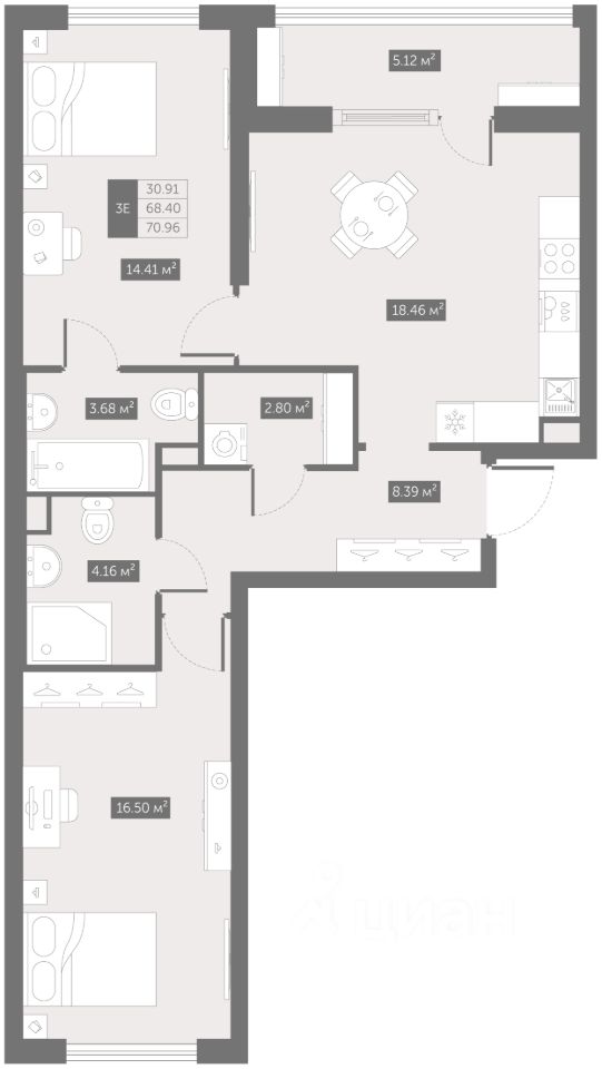 Цена со скидкой до 30% в прямой продаже от застройщика — только в этом месяце. Беспроцентная рассрочка. 2-к квартира в ЖК Up-квартал ''Новый Московский'' на 1-м этаже. Общая площадь 70,96. Без отделки.