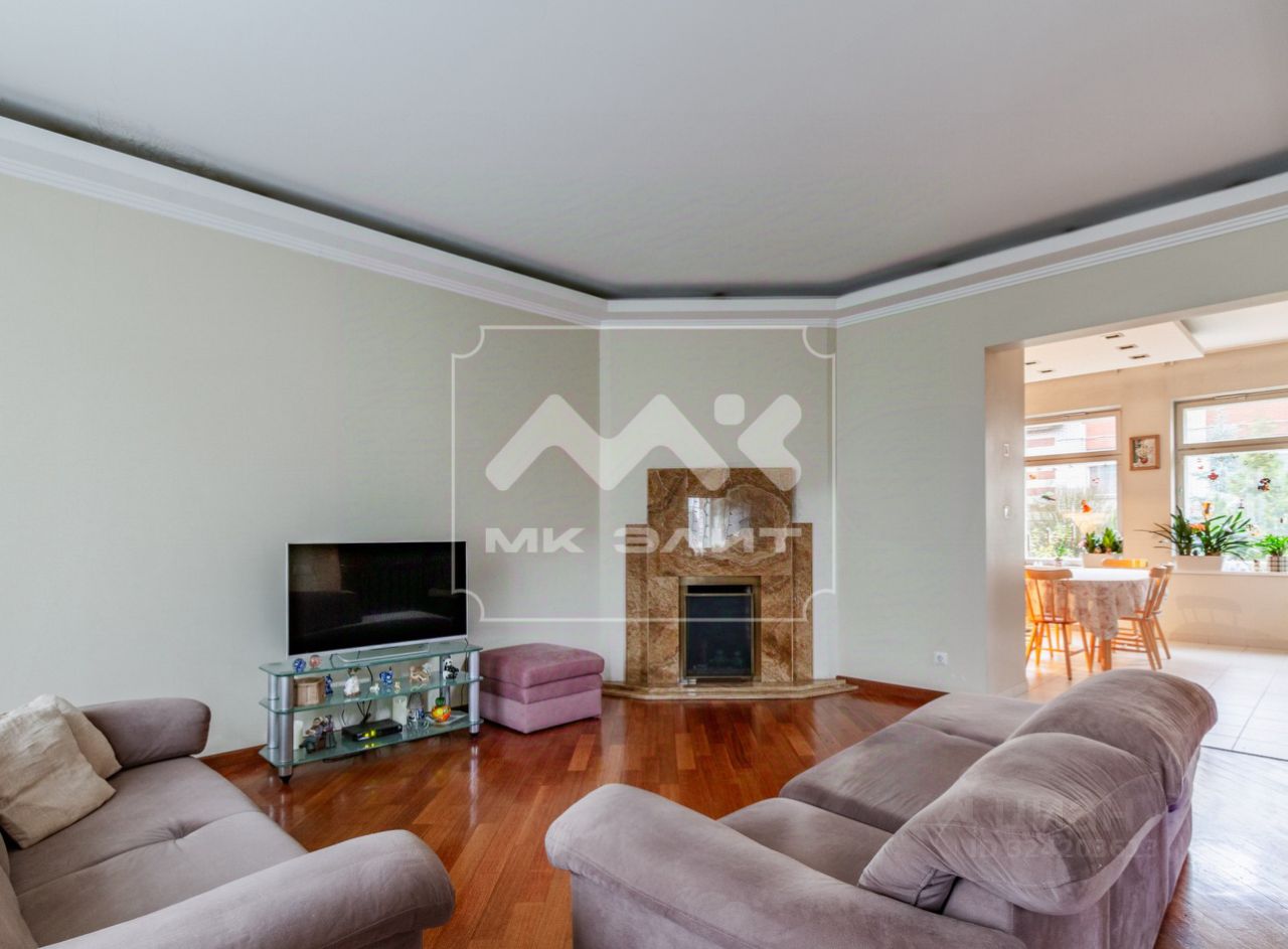 Поднявшись на второй этаж по лестнице из натурального дерева, попадаете в просторную гостиную , с действующим камином, что определенно добавляет уюта. Также предусмотрена зона кабинета со своей небольшой библиотекой. Просторная столовая зона, на кухне установлена встроенная техника Miele.