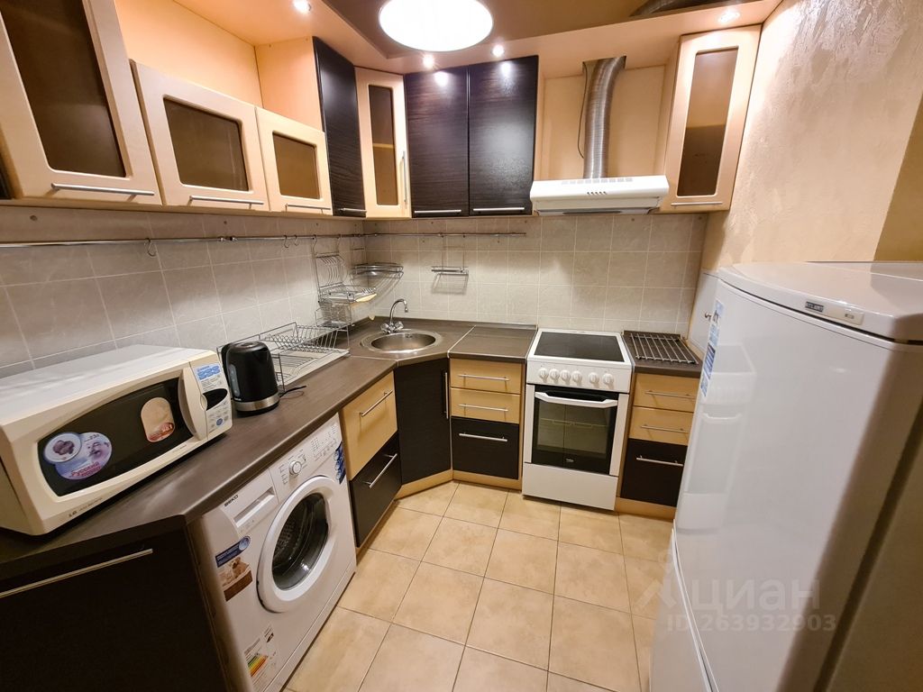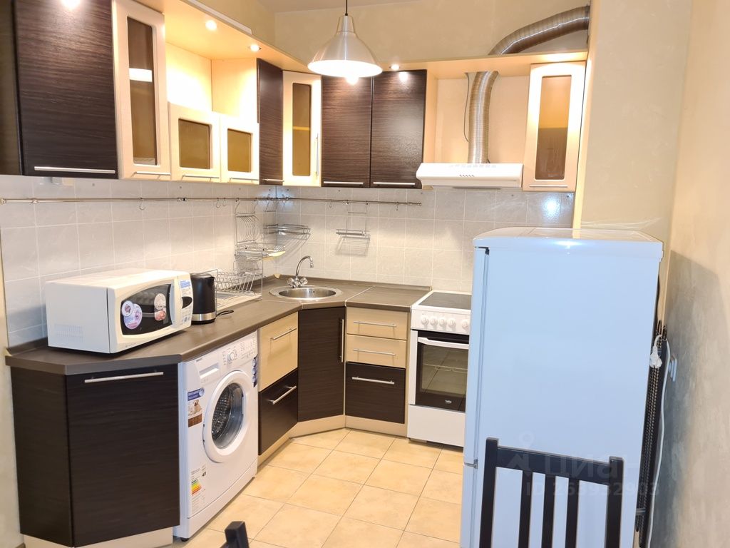 Вся бытовая техника: холодильник, микроволновая печь, стиральная машина, встроенная кухня, кухонный стол, стулья, диван, кресло, мебельная стенка, в комнате кровать двуспальная, письменный стол, комод, шкаф в коридоре.